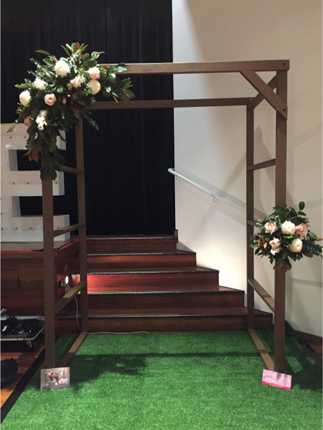 Timber Arbour with White Draping and Fresh Flowers